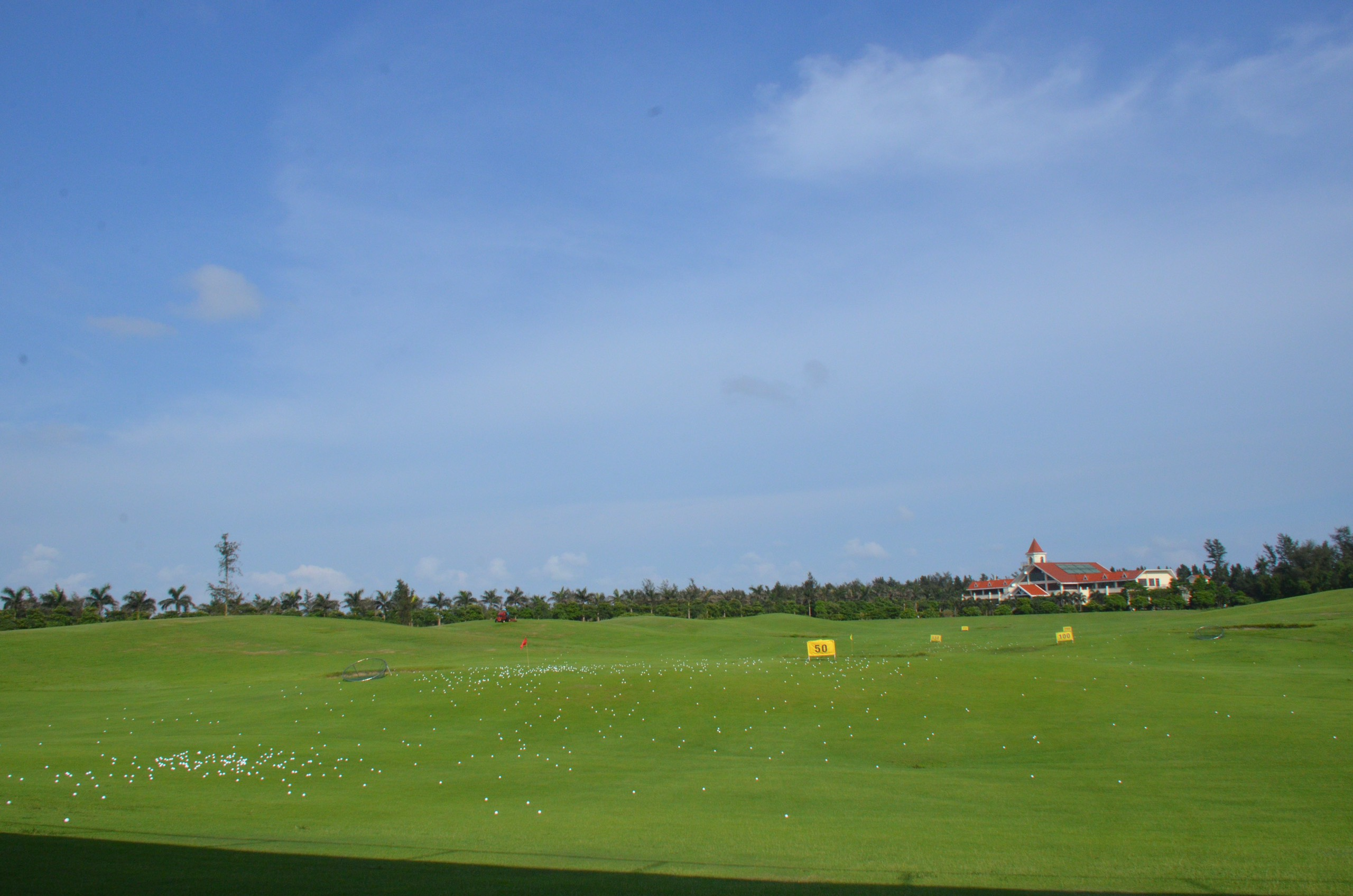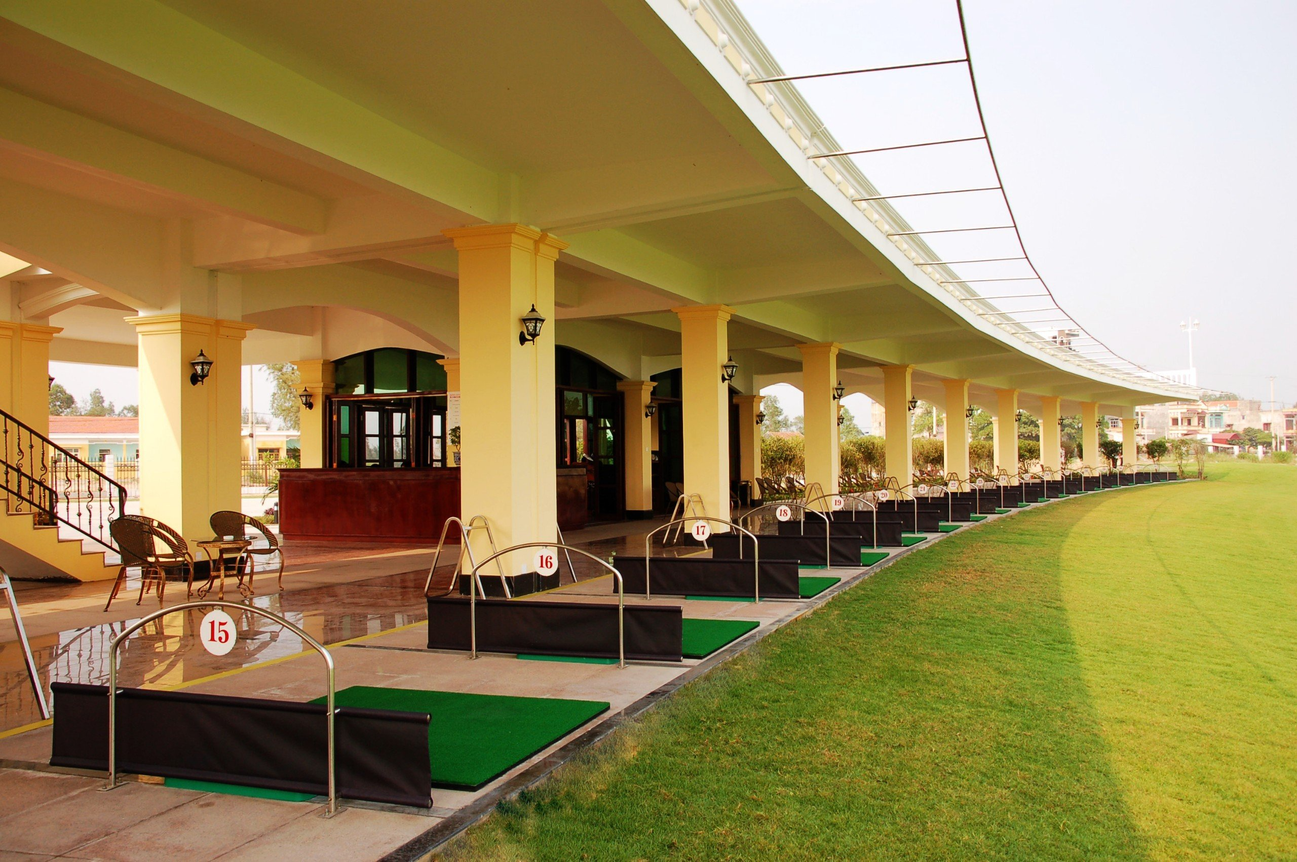 Sân tập golf Móng Cái là một trong những tiện ích rất được chú ý ở sân golf này. Nhà phát bóng chỉ có một tầng nhưng lại thiết kế kéo dài với nhiều làn bóng khác nhau. Mỗi làn bóng sẽ được bố trí bóng tập, thảm nhân tạo cùng nhiều các thiết bị cần thiết khác. Phía trước là khu vực green rộng lớn với thảm cỏ xanh thoạt trông qua đã được chăm sóc rất tốt.